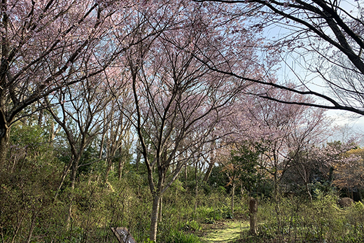 早春を告げた河津桜が終わり、大寒桜、今は小ぶりの白い花が可愛らしい小彼岸桜が満開。今を盛りと咲き誇る桜の園に蜜を啄む鳥たちの囀り。