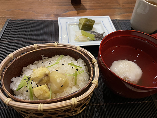 秋を感じる、栗おこわ。もちもちとした食感がいい。