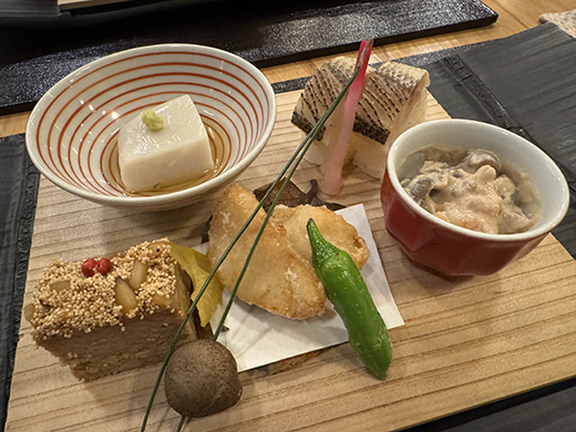 晩秋の山の幸と盛り合わせた八寸は目にも楽しい。