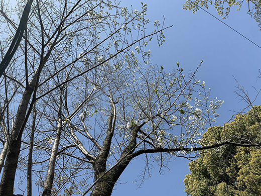 「花吹雪の個性的な大物女優さん、大島桜は3月中旬〜下旬。森の最盛期になりますね」